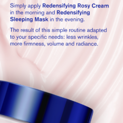 Una innovación de AGE ABSOLU, nuestra mascarilla antienvejecimiento global que estimula la síntesis de pro-colágeno X6* para devolver la densidad y rellenar todo tipo de pieles maduras, incluso las sensibles. Esta mascarilla antiedad redensificante actúa sobre todos los signos visibles del envejecimiento: arrugas – flacidez – pérdida de volumen – pérdida de luminosidad – pérdida de nutrición. La piel se redensifica, se rellena y parece más joven. Por la mañana, la piel se fortalece y regenera.