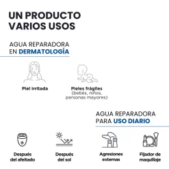Esta agua, rica en sales de calcio y magnesio, tiene un efecto calmante sobre las pieles sensibles.