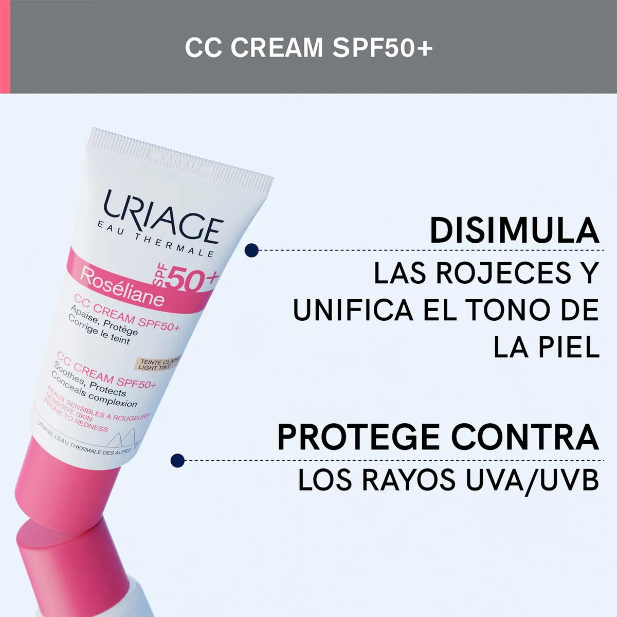 ROSELIANE Crema Anti-rojeces con color SPF50+, formulada con ingredientes dermatológicos clave, vitamina E y ceramidas, unifica la tez y reduce las rojeces mientras protege la piel de los rayos UVB/UVA.